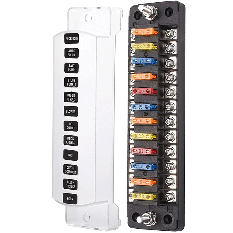 บล็อกฟิวส์ 12 โวลต์ไม่มีไฟ LED ตัวบ่งชี้ Damp 12 วงจร ATC/ATO อิสระบวกลบฟิวส์กล่องผู้ถือสําหรับยานยนต์