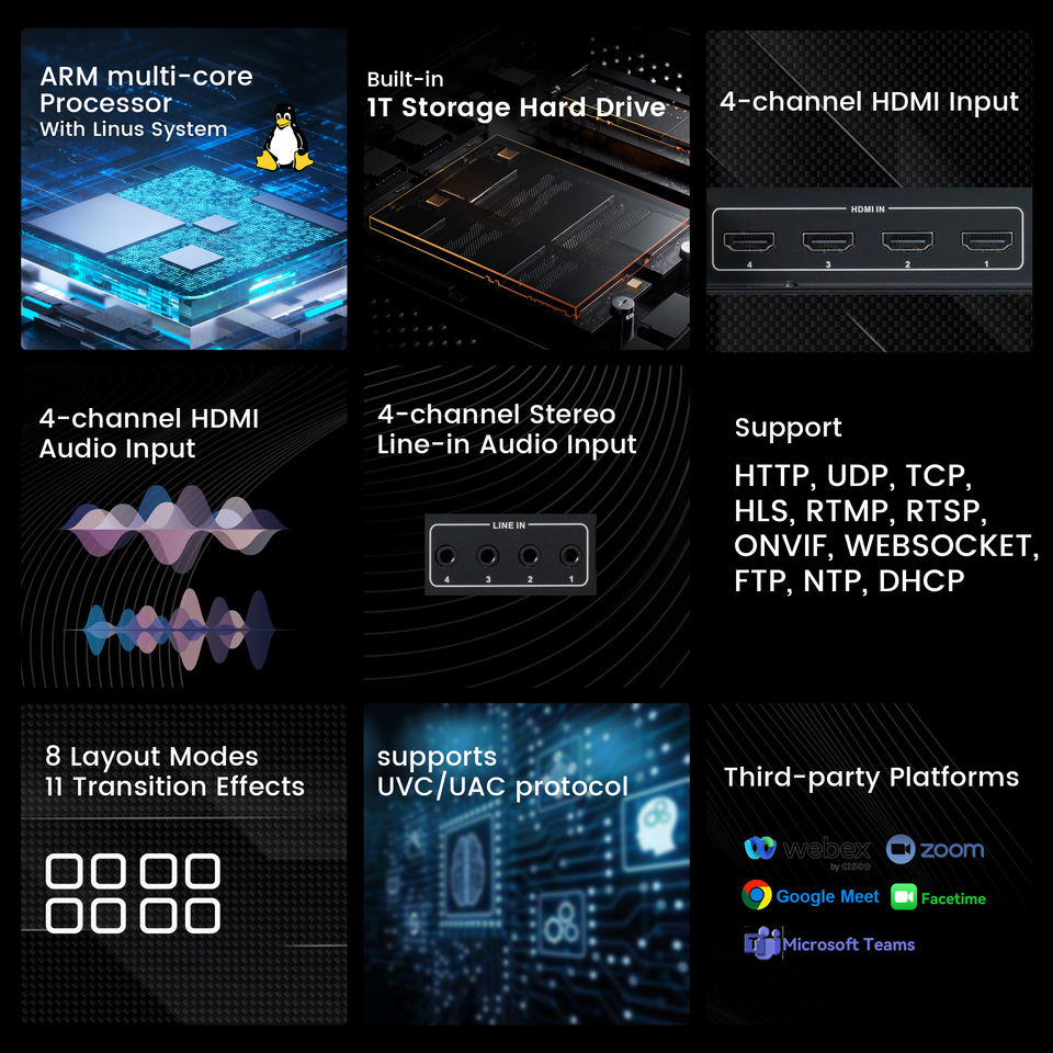 1T 스토리지 리눅스 시스템 4K 웹캐스팅 컨퍼런스 녹화 및 방송 호스트