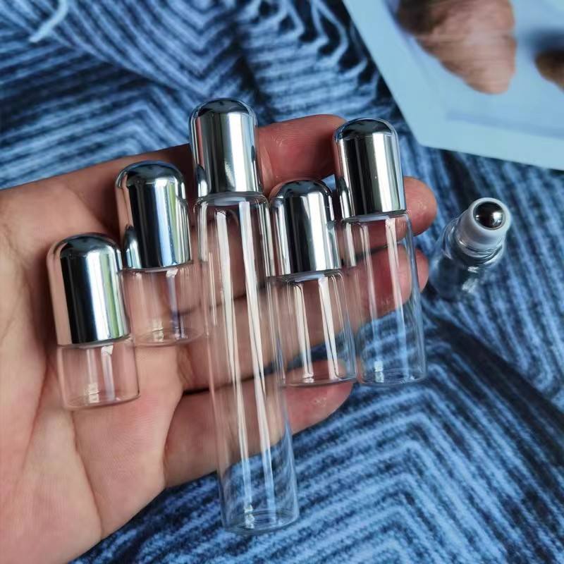 1Ml 2Ml 3Ml 5Ml 10Ml Vòng Xi Lanh Thủy Tinh Nước Hoa & Tinh Dầu Chai Với Thép Không Gỉ Con Lăn Bóng Cho Mỹ Phẩm