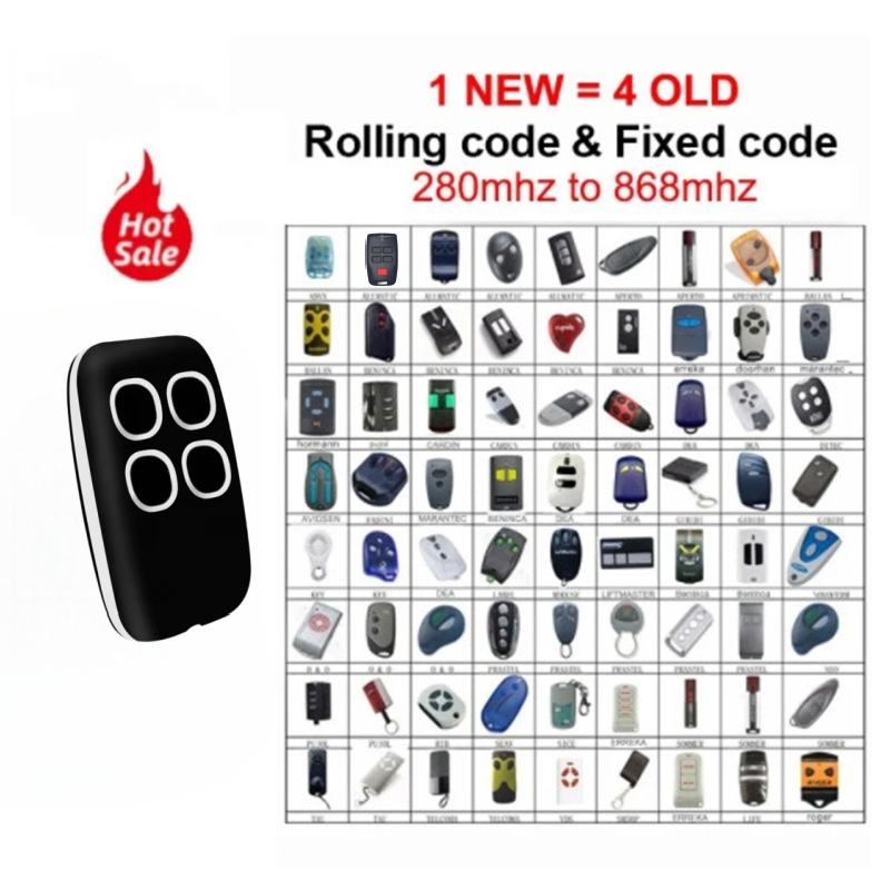 2/4 Button Rolling Code 433mhz Garage Door Wireless Remote Control Door Opener Compatible for MITTO2 Remote Control
