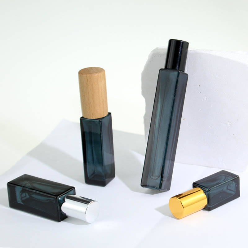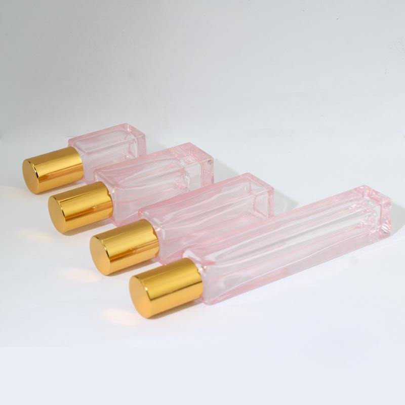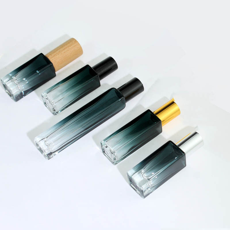 3ml 5ml 10ml Transparent Gradient Color Square Shape Perfume Essential Oil Glass Roll on Bottle With Steel or Glass Roller Ball
