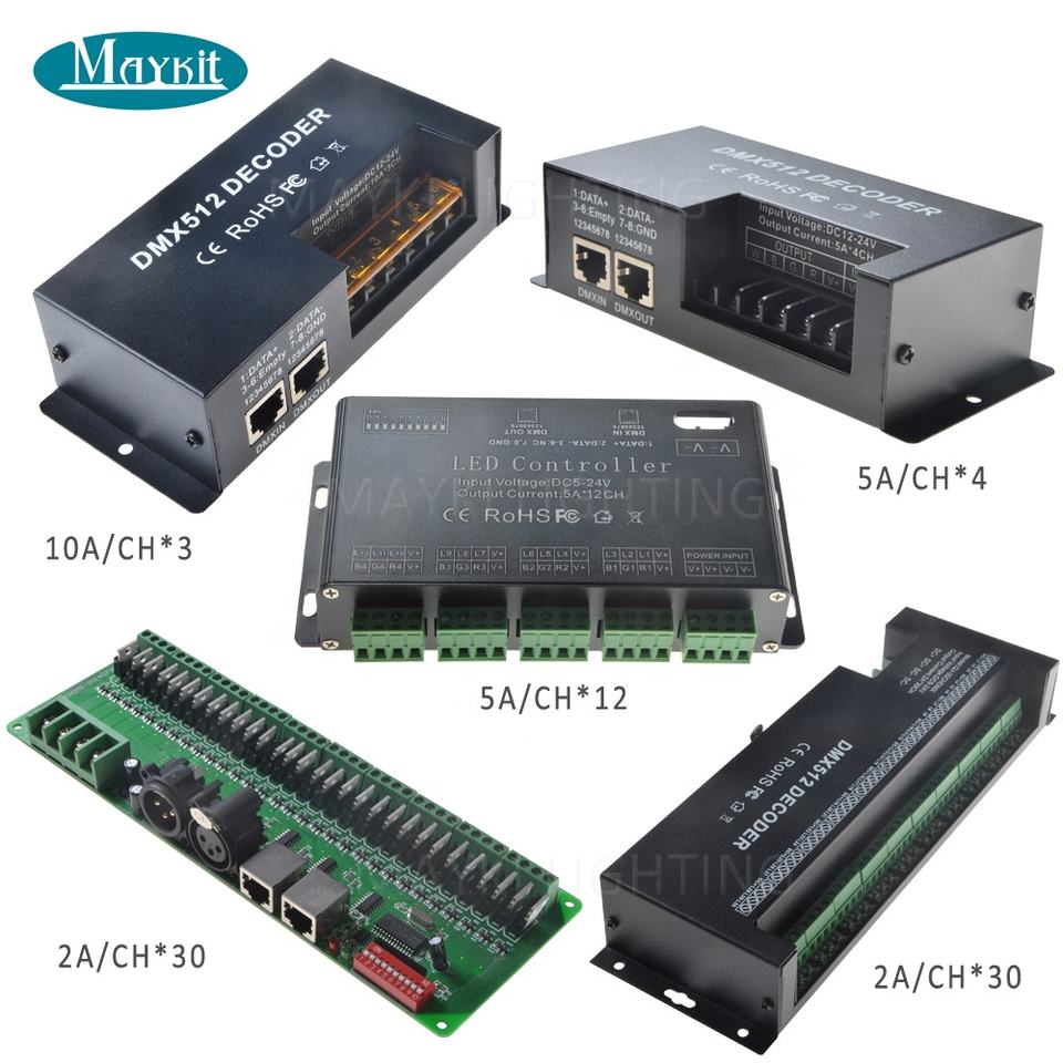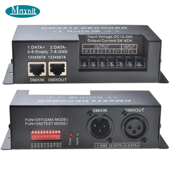 Decodificador de 4 canales DMX512, RGBW, DMX512, controlador LED para iluminación de tira