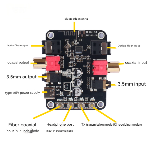 5.0 máy phát và máy thu mô-đun sốt cấp Bluetooth đồng trục sợi quang lossless âm thanh loa khuếch đại mô-đun không dây