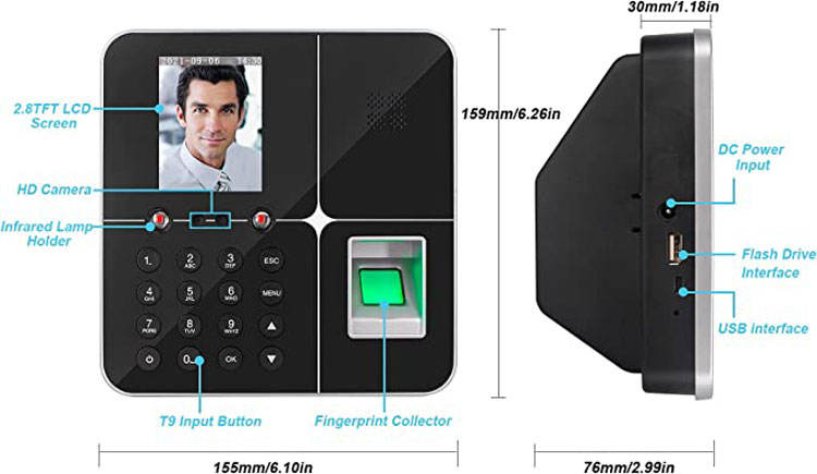 Registrador de tiempo de la cara y de la huella dactilarNombre del artículo