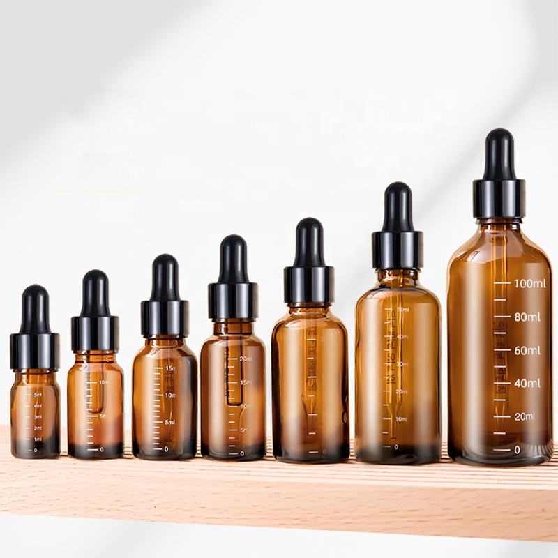 5ml 10ml 15ml 20ml 30ml 50ml 100ml Amber temizle boş mezun damlalık cam uçucu yağ şişe ölçeği ile