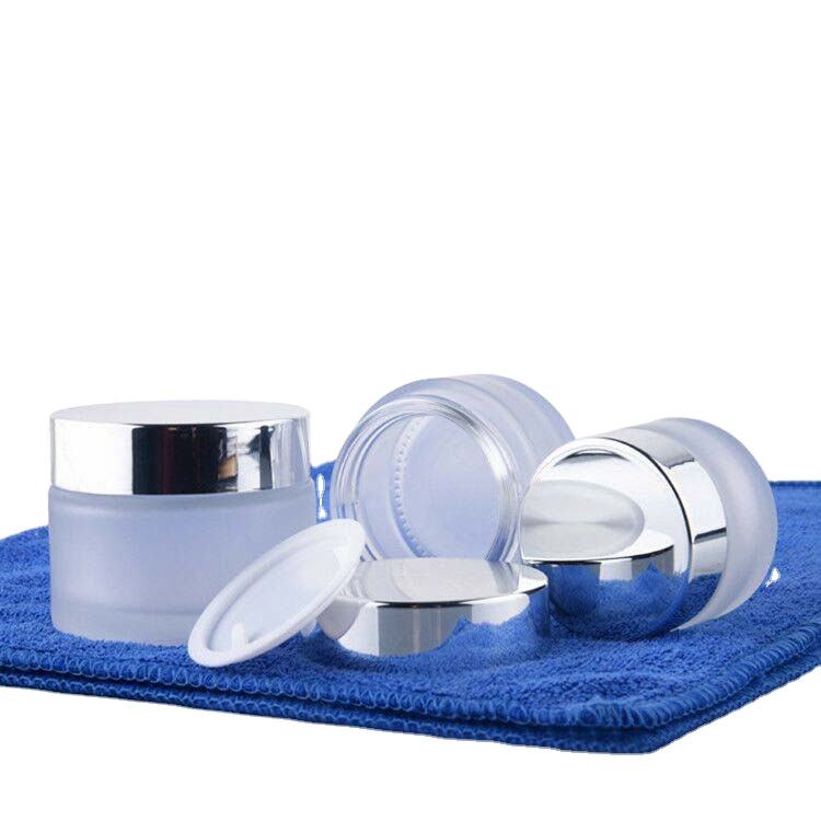 Descripción::Frasco de vidrio esmerilado tarro de crema cosmética