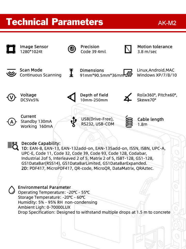 Nombre del producto:Escáner integrado del código de barras