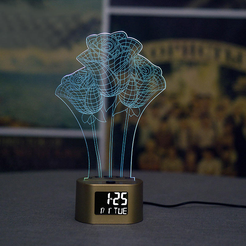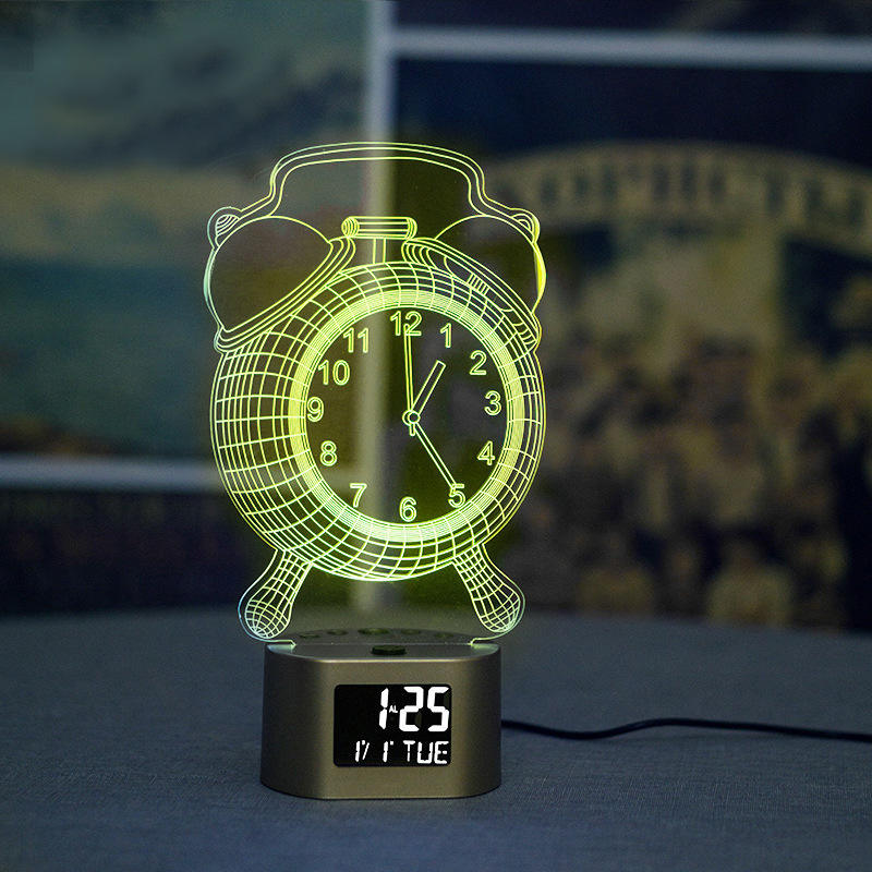 Despertador base Multifunción Calendario 3D Lámpara de escritorio Luz de noche LED 7 Cambio de color Reloj dormitorio Base de luz de color