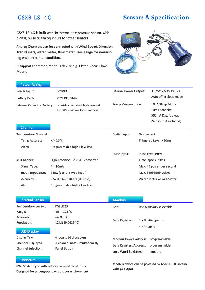 Caja de cartón módulo SMS de alarma con batería interna de uso prolongado Modbus RS485 puerta de enlace instrumentos de medición de nivel de agua de flujo de agua