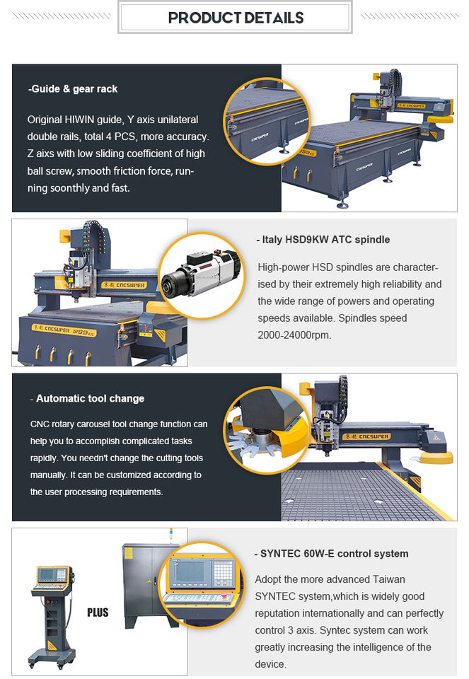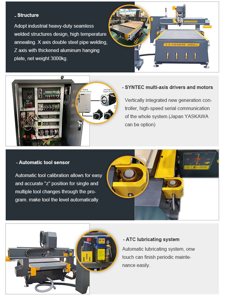 Enrutador CNC Atc SYNTEC 60WE Sistema de control 2040 1530 1325 Enrutador de madera Máquina CNC con biblioteca giratoria Atc 8 herramientas