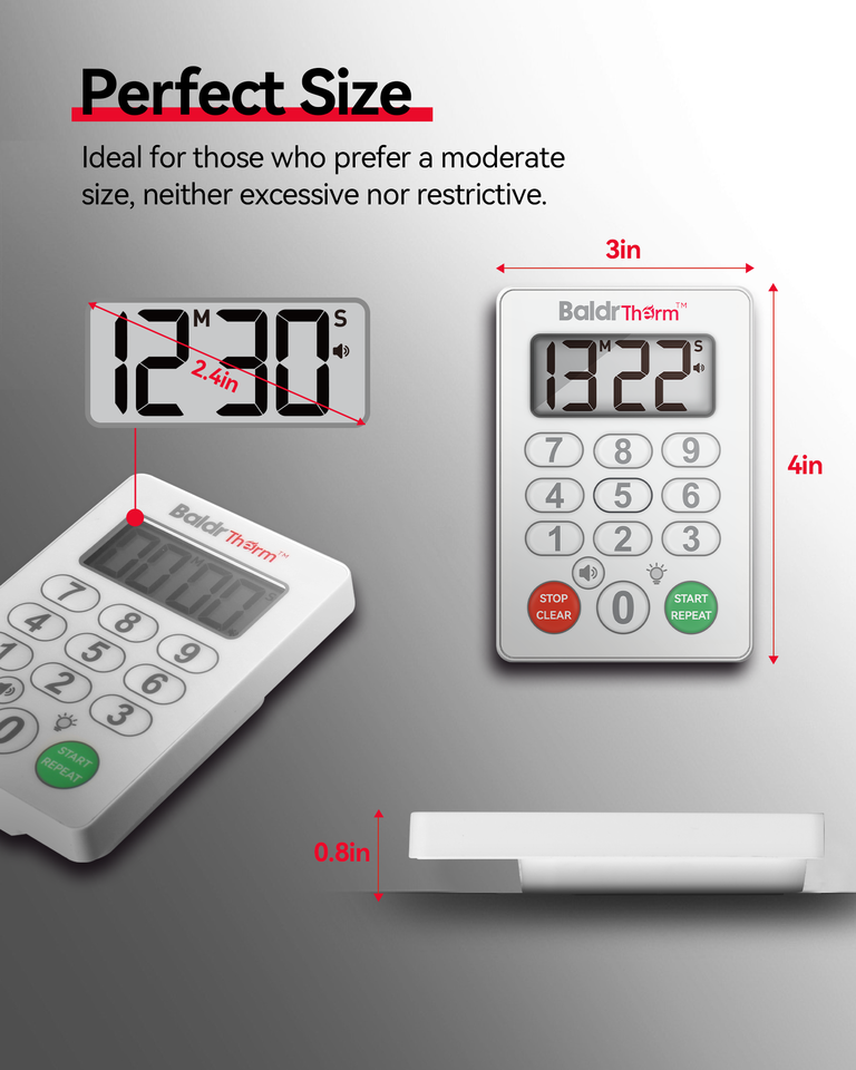 BaldrTherm-Temporizador de cocina de 99min, cuenta regresiva con control de volumen y modo de memoria, temporizador de plástico para uso en el hogar/SPA/gimnasio