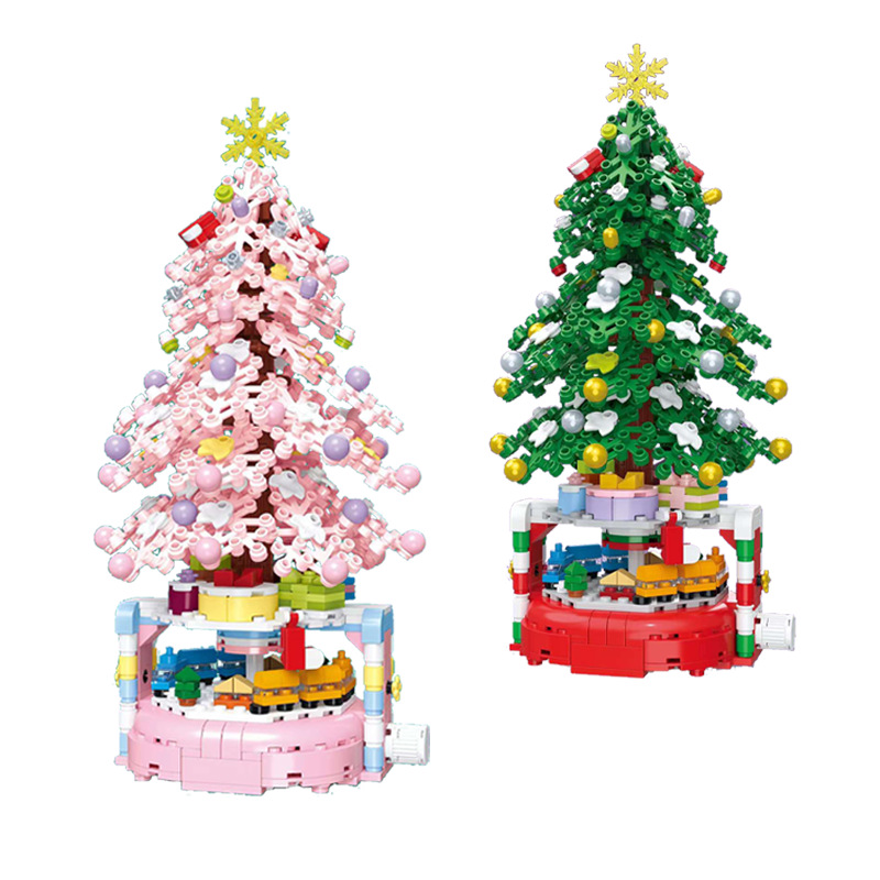 Set de Bloques de Construcción DIY para Niños con Macetas Giratorias para Armar un Árbol de Navidad
