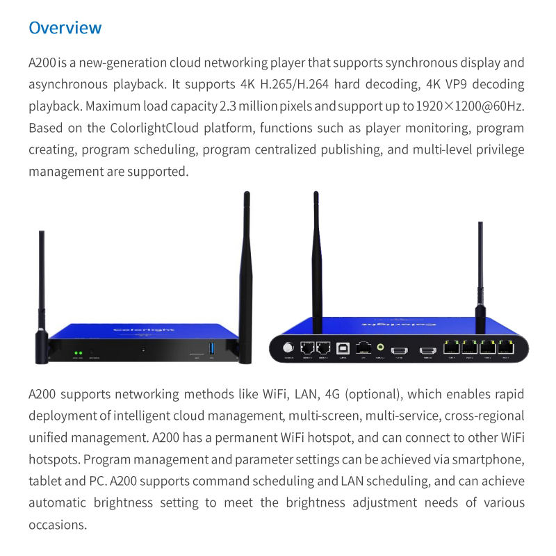 Colorlight A200 senkron asenkron ağ oyuncu LED ekran reklam ekranı tam renkli ekran kontrol kutusu