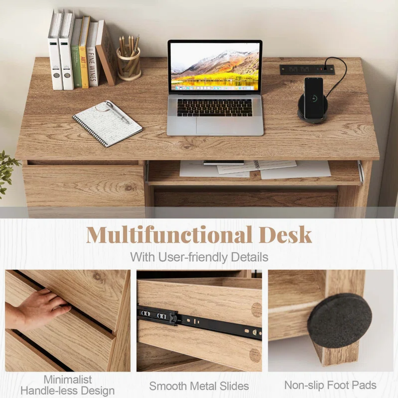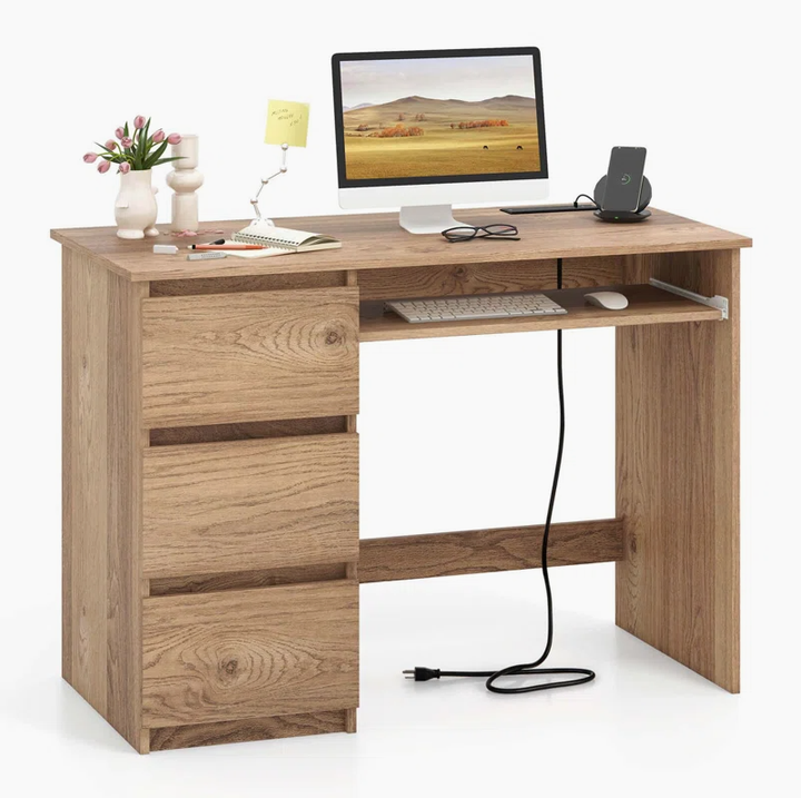 उत्पाद का नाम:पावर आउटलेट कीबोर्ड ट्रे और बड़े दराज के साथ कंप्यूटर डेस्क