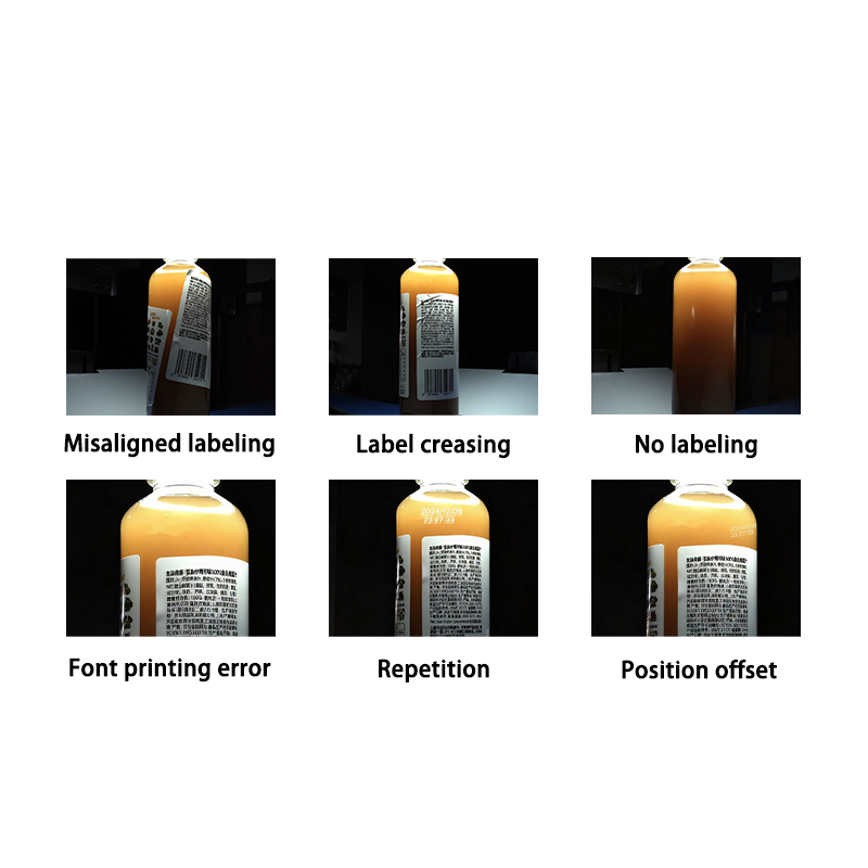 Sistema de detección visual de etiquetas de botellas personalizadas | Equipo de control de calidad de embalaje automatizado