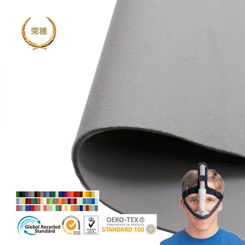 Customized Three Layer Hook and Loop Magic Fabric Laminated PU Foam Composite Fabric Elastic OK Cpap Headband Fabric