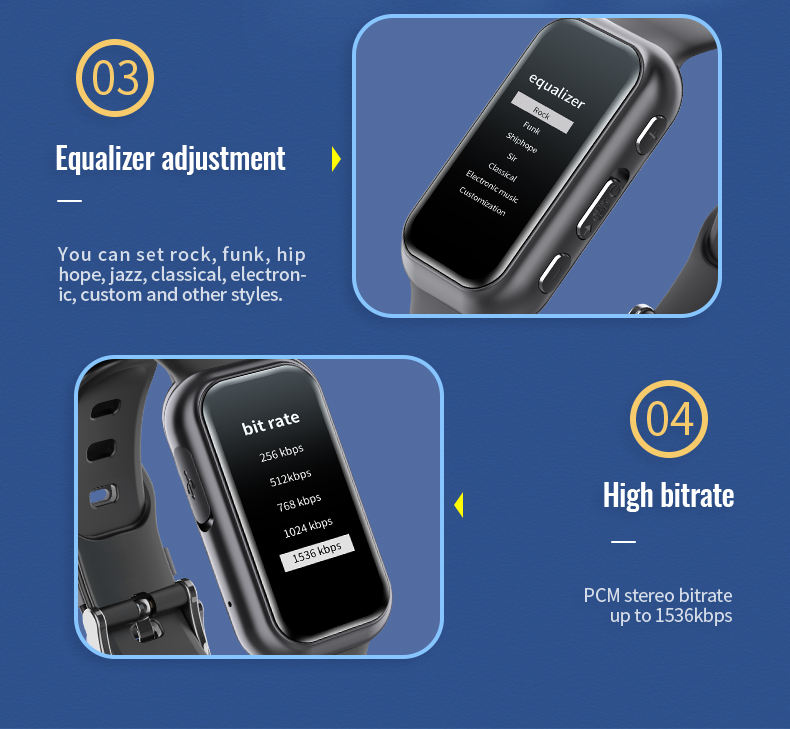Dsp 8-core công nghệ mã hóa tập tin MP3 máy nghe nhạc bằng giọng nói kích hoạt thông minh tay Vòng đeo tay ghi âm