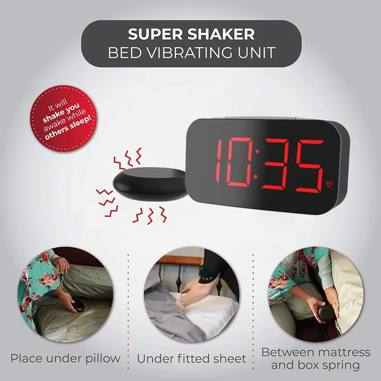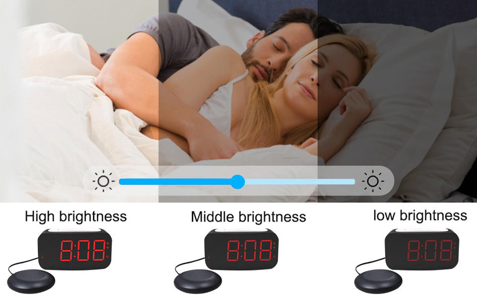 Reloj despertador digital con pantalla LED de tiempo y reloj vibratorio de luz intermitente de brillo ajustable para pérdida auditiva