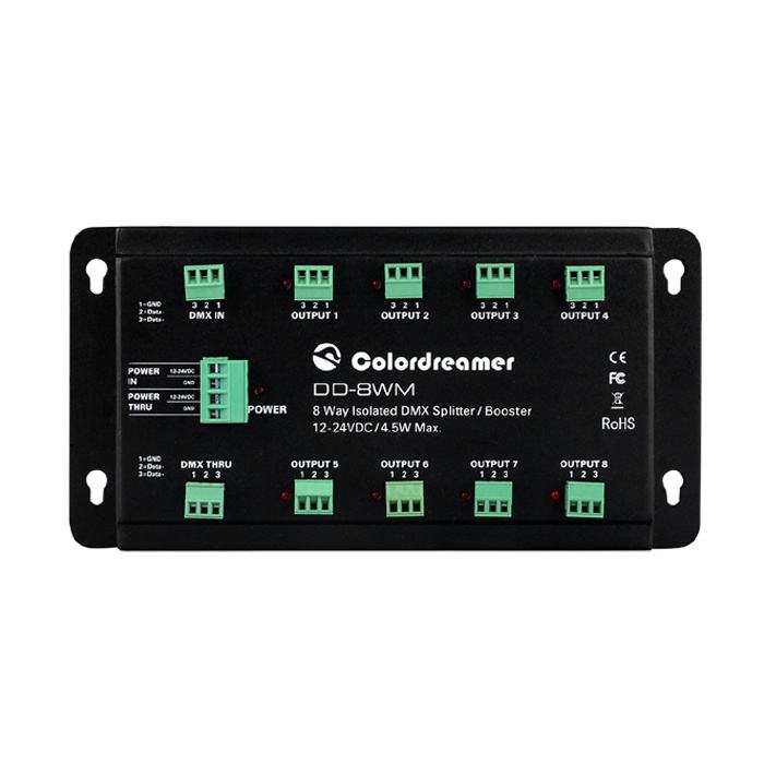 Distribuidor de señal Dmx Divisor de decodificador de CC Distribuidor de señal Dmx512 de 8 vías para sistema de iluminación Led