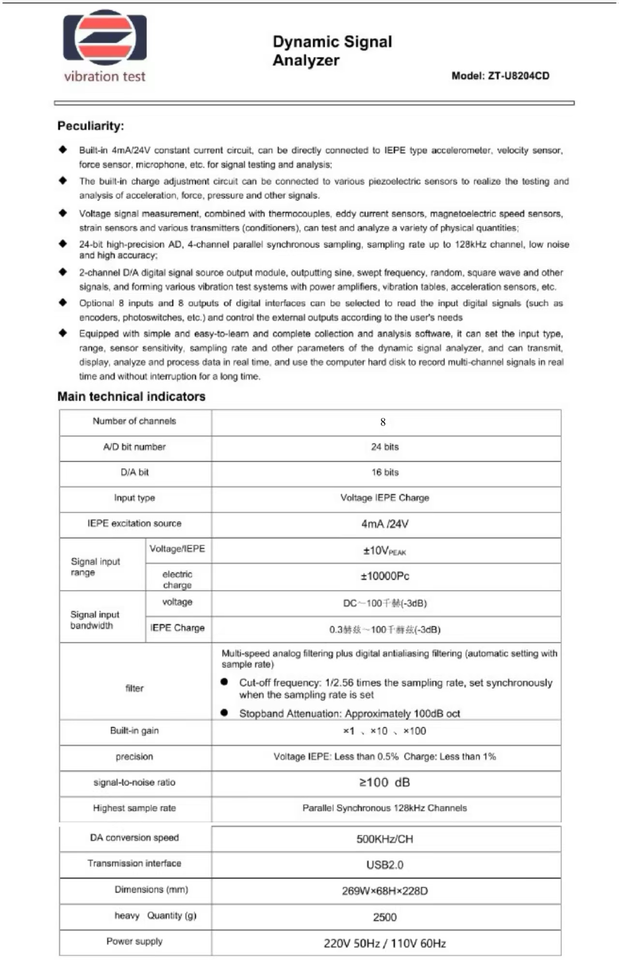 Analyseur de signal dynamique Collecteur de données de signal de vibration et contrôleur pour instruments de test Analyser le signal de vibration du produit