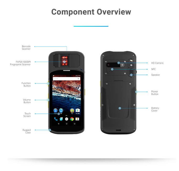 Terminal H5 genggam perangkat otentikasi ID Ekem dengan RFID dan pembaca kode batang untuk pemeriksaan Bandara