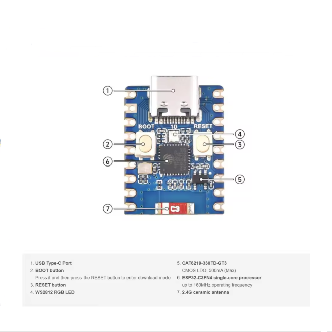 ESP32-C3FN RISC-V nhúng mô-đun bảng phát triển Bộ xử lý lõi đơn Wifi/Bluetooth 5
