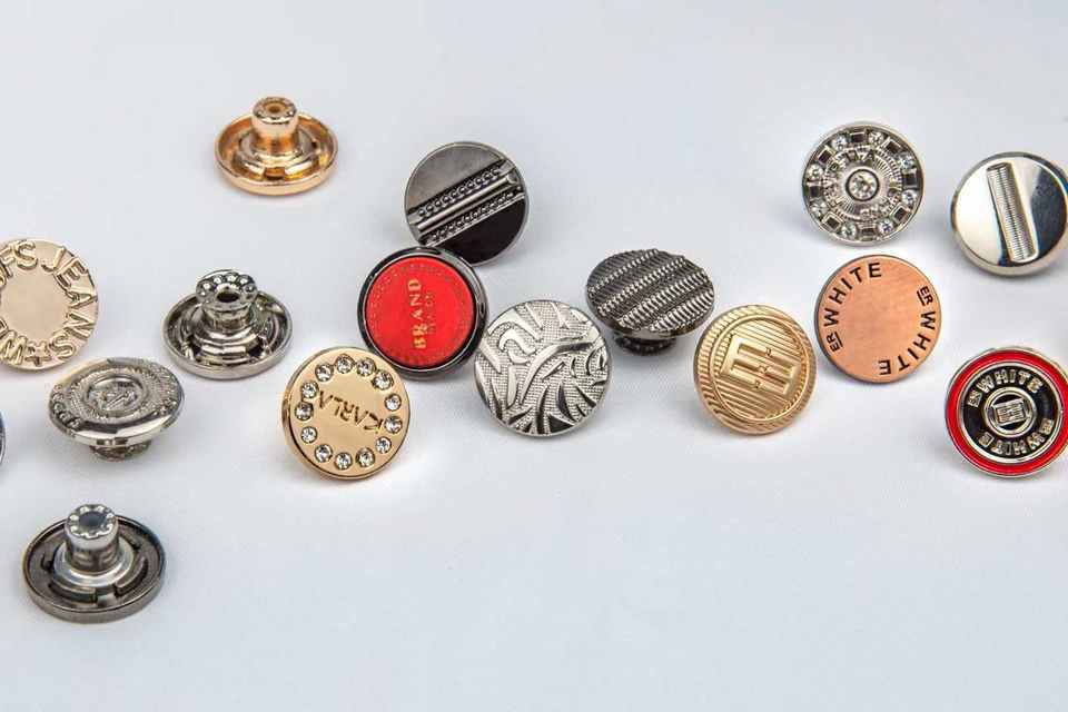 EXCELLENCE Botones de eliminación de metal personalizables para jeans Logotipo de vástago chapado en oro Decoración esmaltada Accesorios de ropa Prendas