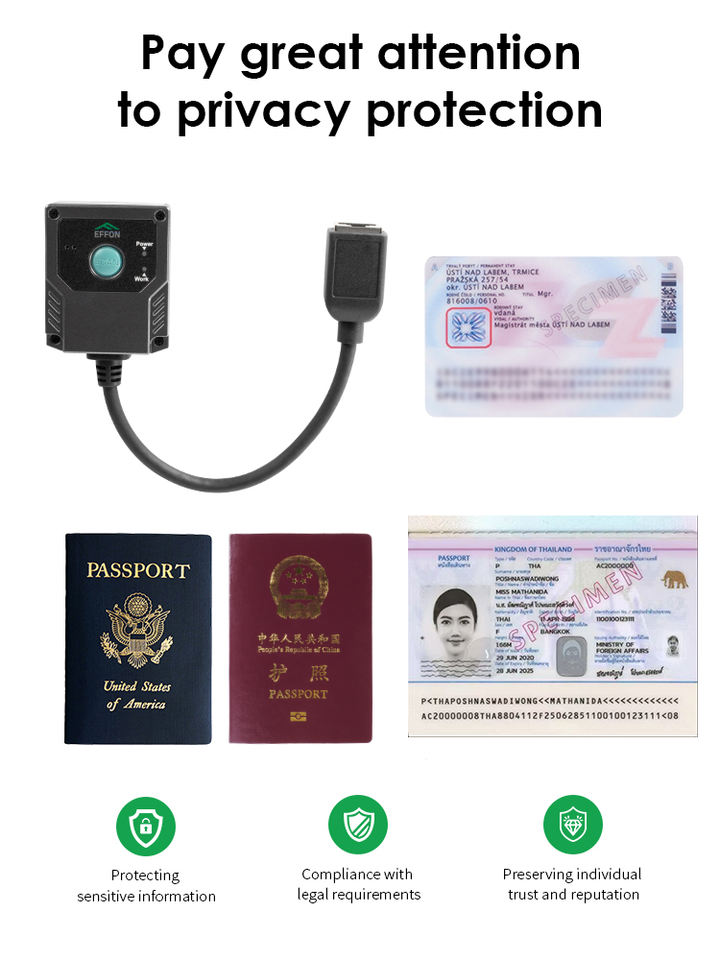 Effon MS430 inventó la aplicación de ejemplo PHP SDK Android hoja de cálculo lector de escáner de pasaporte para billetes de autobús del aeropuerto estación de tren