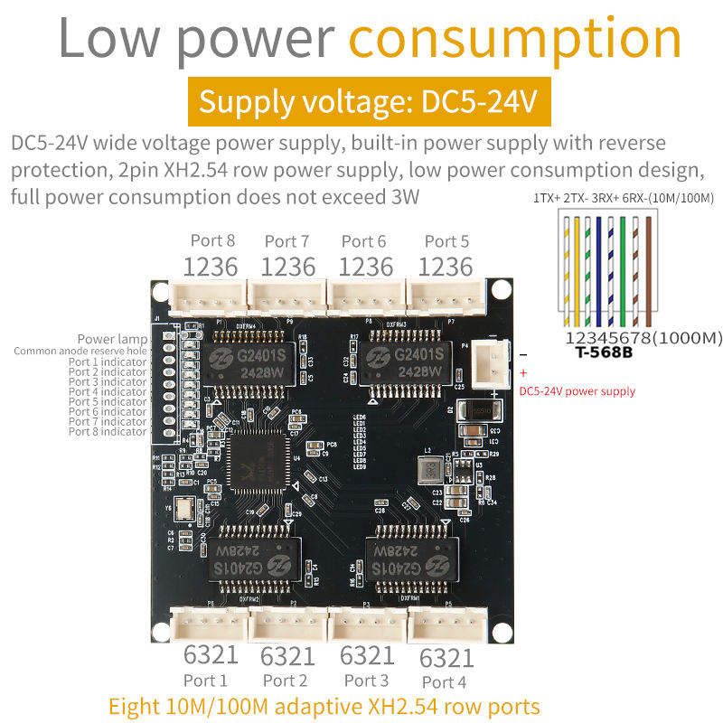 Tipo de conector:8*10/100M XH2.54 fila asiento interfaz de red