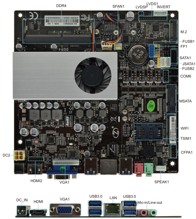 1 * MINI-PCIE (mSATA de la ayuda), 1 * MINI-PCIE (ayuda WIFI 3G)