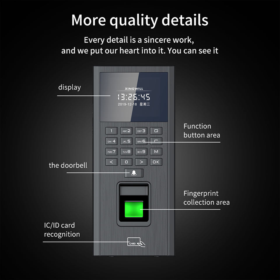Huellas dactilares: 1000, contraseñas: 1000, tarjetas de identificación: 1000