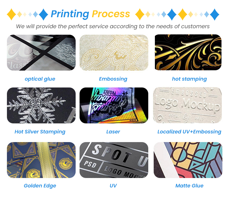 Surface finishing:Varnish/Lamination/Linen/UV or Custom