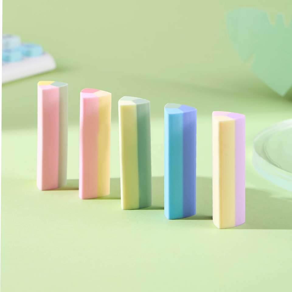 Nhà Máy Tùy Chỉnh Mềm Sạch Đầy Màu Sắc Hình Chữ Nhật Cao Su Tẩy Bán Buôn Trẻ Em Văn Phòng Phẩm Bút Chì Tẩy