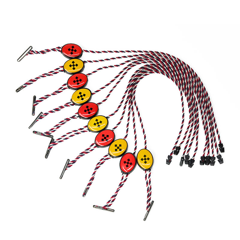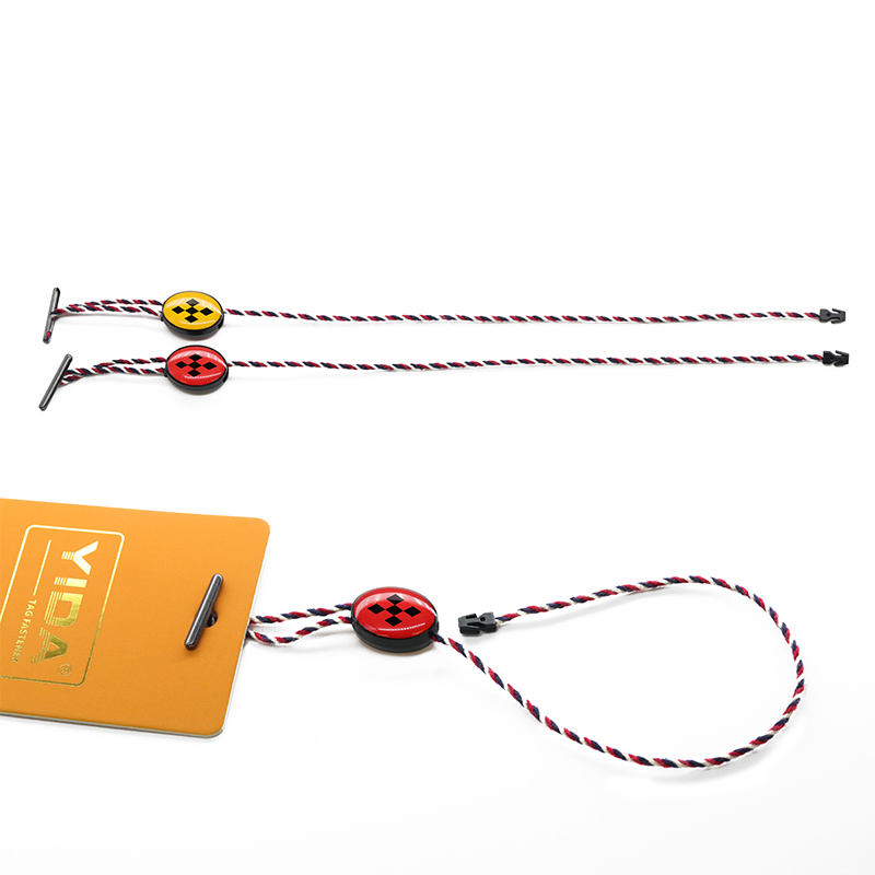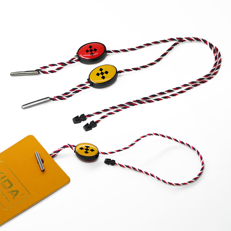Chaîne d'étiquettes volantes personnalisées en usine Granules de colle à double insertion LOGO universel suspendu Corde d'étiquettes volantes bicolore