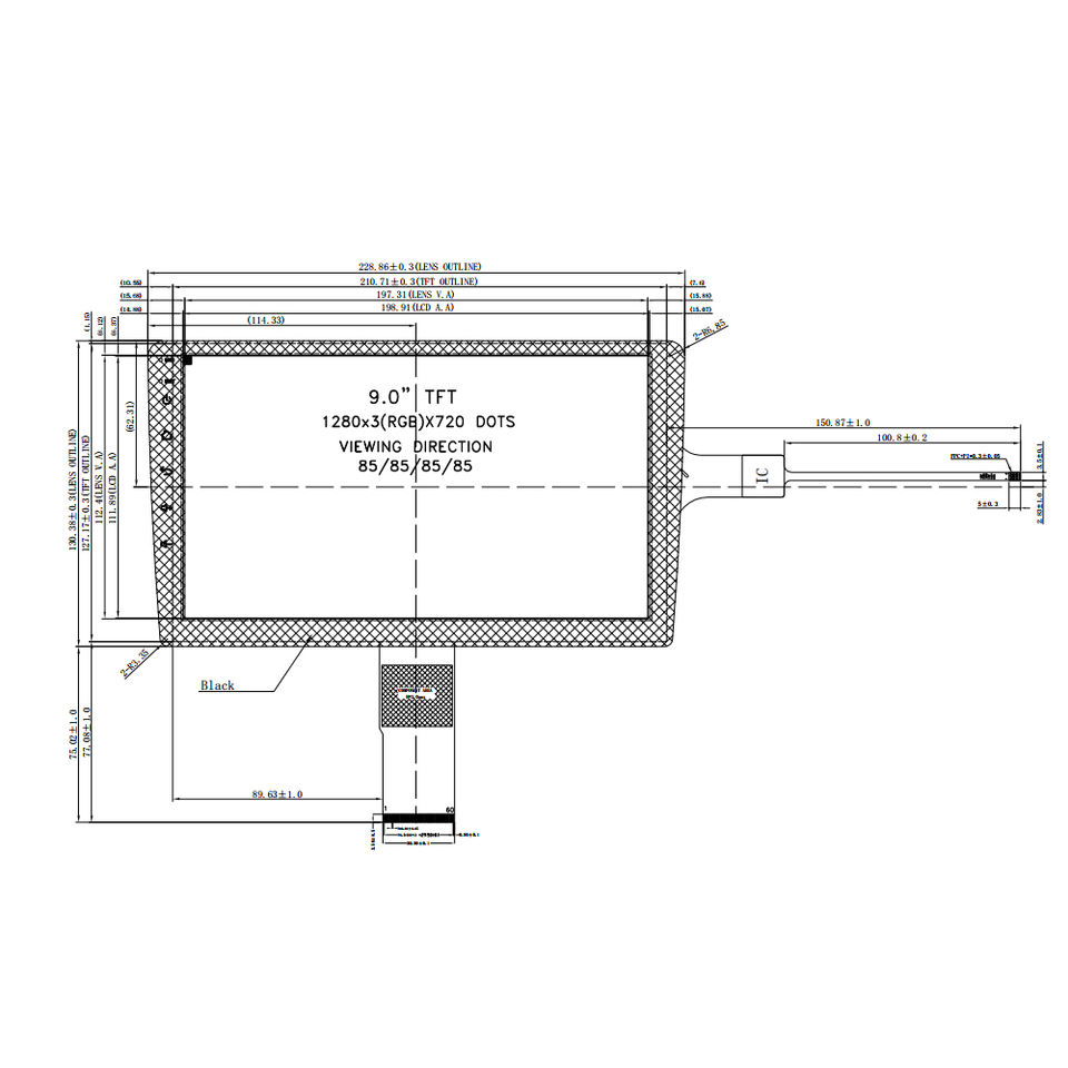 Fábrica I2C Pantalla táctil capacitiva TFT Pantalla de visualización Tft automotriz Módulos Tft Lcd Ips/transmisivo/normalmente negro 9,0 pulgadas