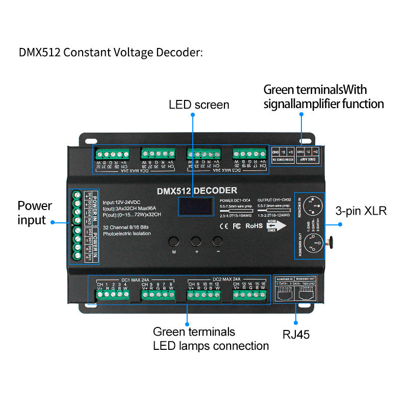 جهاز فك ترميز الجهد المستمر 32CH DMX512