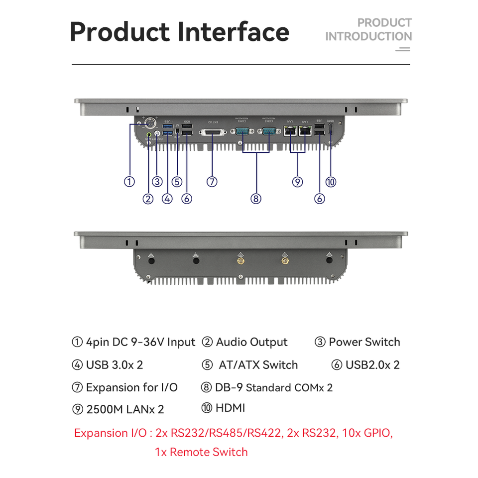 2 x DB-9 Com (RS232/RS422/RS485)