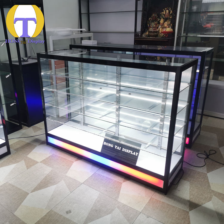 Vitrina de Exhibición de Vidrio con Base Colorida y Diseño Moderno, con Iluminación LED para Productos de Tienda de Cigarrillos