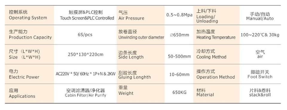 Nome della macchina:Incollaggio laterale del filtro della cabina manuale a doppio uso M/C