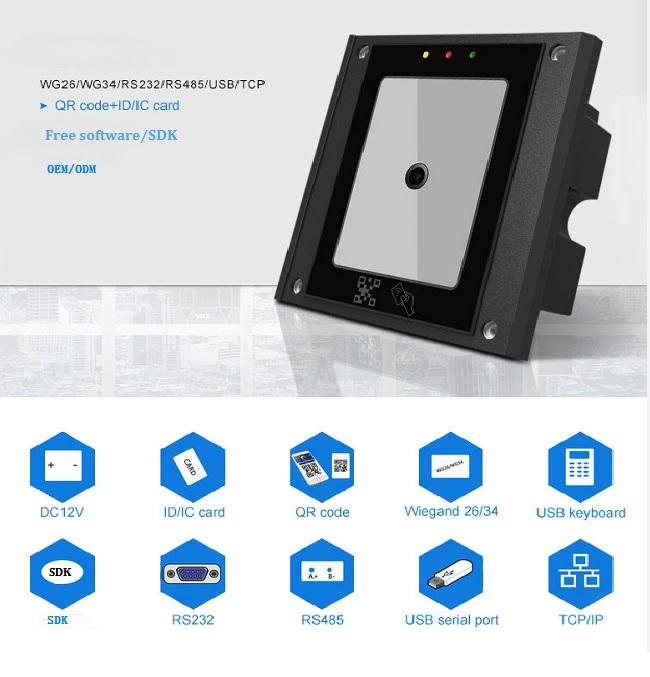 Gratis SDK Kode QR Sistem Akses WG26/34 USB RS485 RS232 Kode QR Barcode Scanner RFID TCP/IP QR Code Reader
