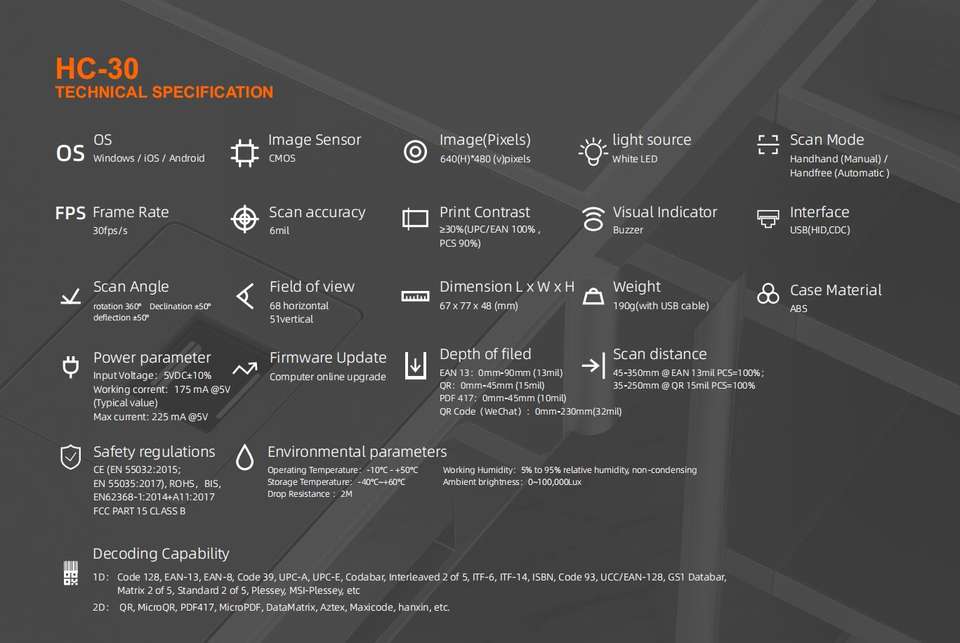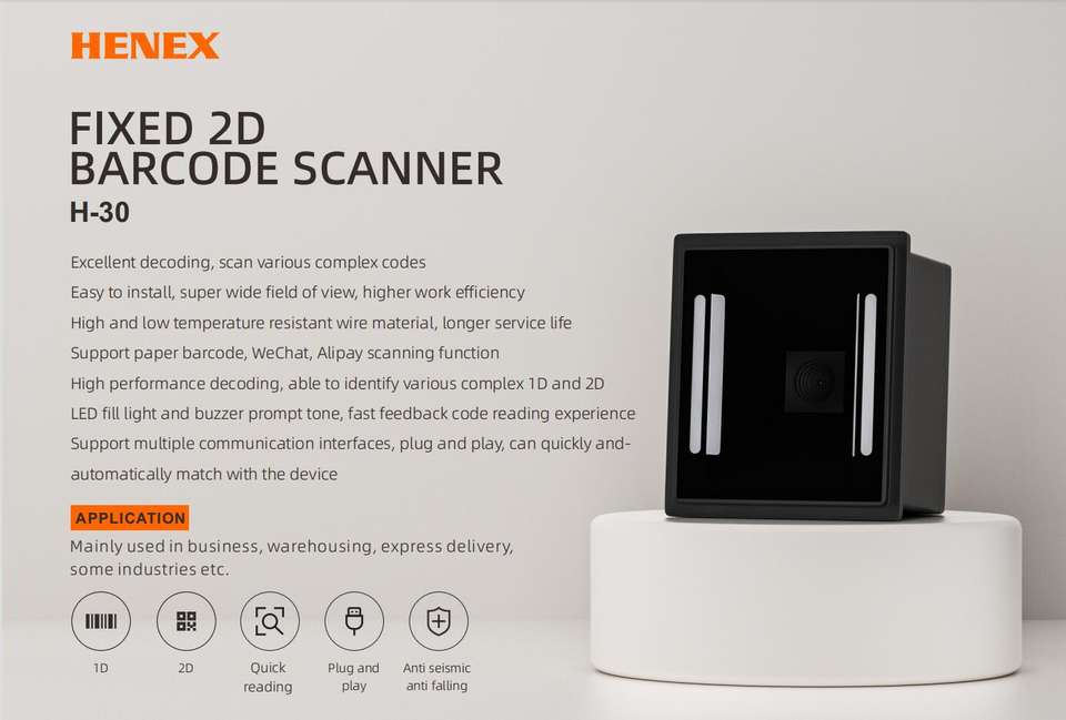 Escáner de código de barras integrado fijo HENEX, lector de código QR 1D 2D con conexión por cable USB para compras minoristas y supermercados