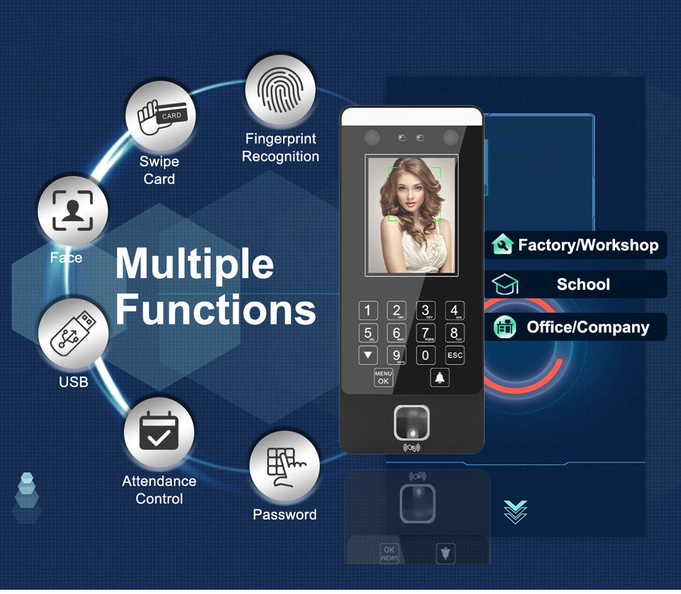 เครื่องเข้างานด้วยใบหน้าชีวมิติ RFID ส่งออกผ่าน USB ระบบ Linux ความละเอียดสูง