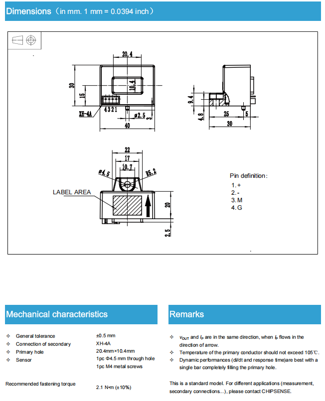 Primary nominal rms current:0~±400A