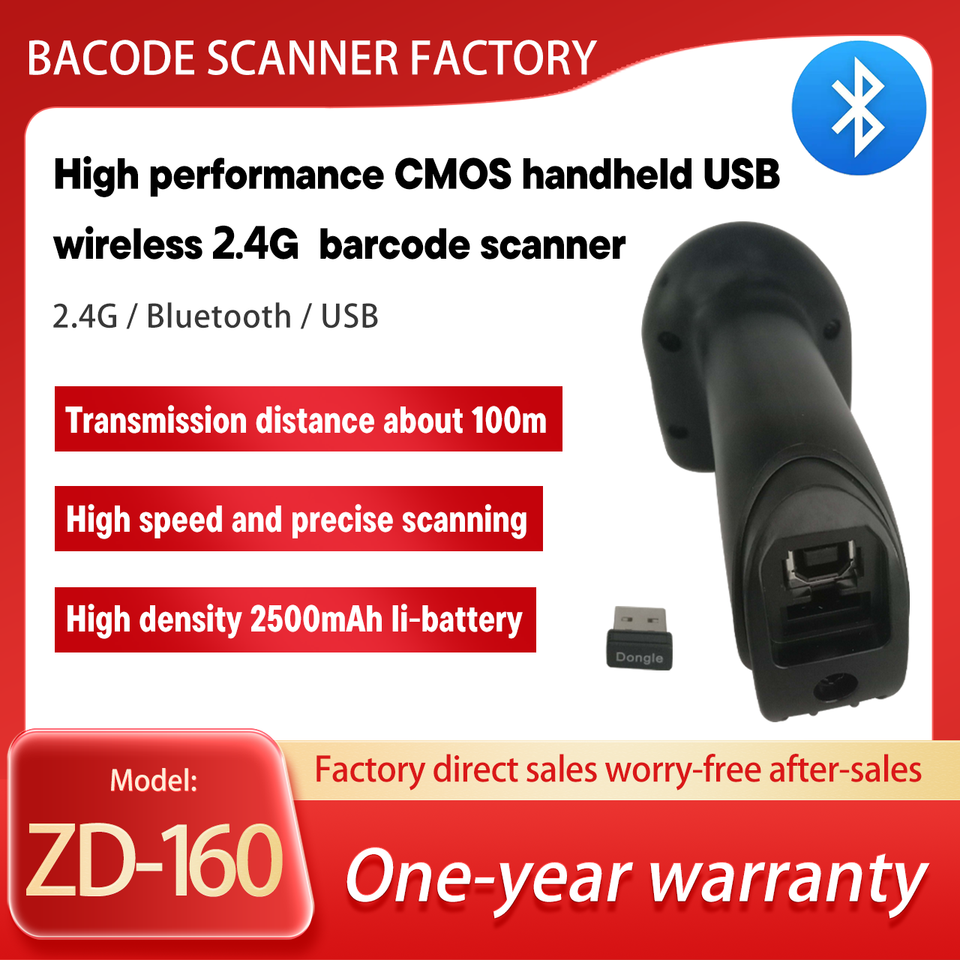 Yüksek performanslı 1D/2D otomatik tarama CMOS el USB kablosuz 2.4G kablosuz iletim barkod tarayıcı