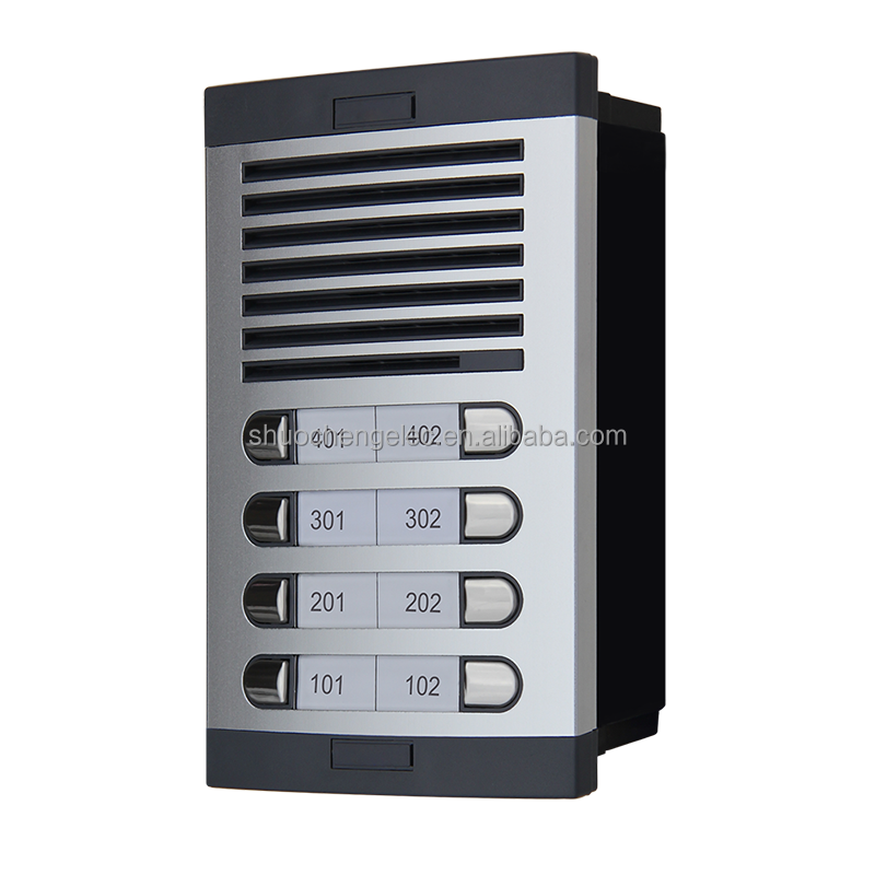 Sistema de Seguridad para el Hogar con Intercomunicador de Audio Bidireccional y Timbre con Panel de Puerta Metálico, Instalación Empotrada o en Superficie con Cableado 3+N para 8 Familias
