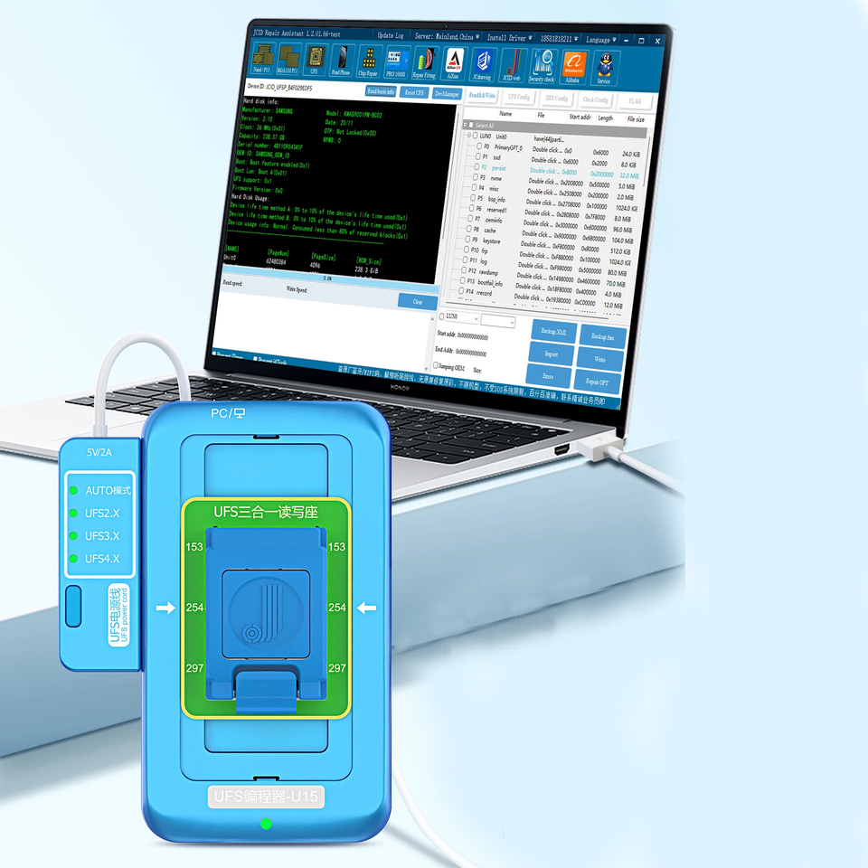 Programador JCID U15 UFC Compatible con Lectura y Escritura de UFS NAND, Expansión de Capacidad BGA153 254 297 3 en 1, Identificación de Chips UFS2.X 3.X 4.X
