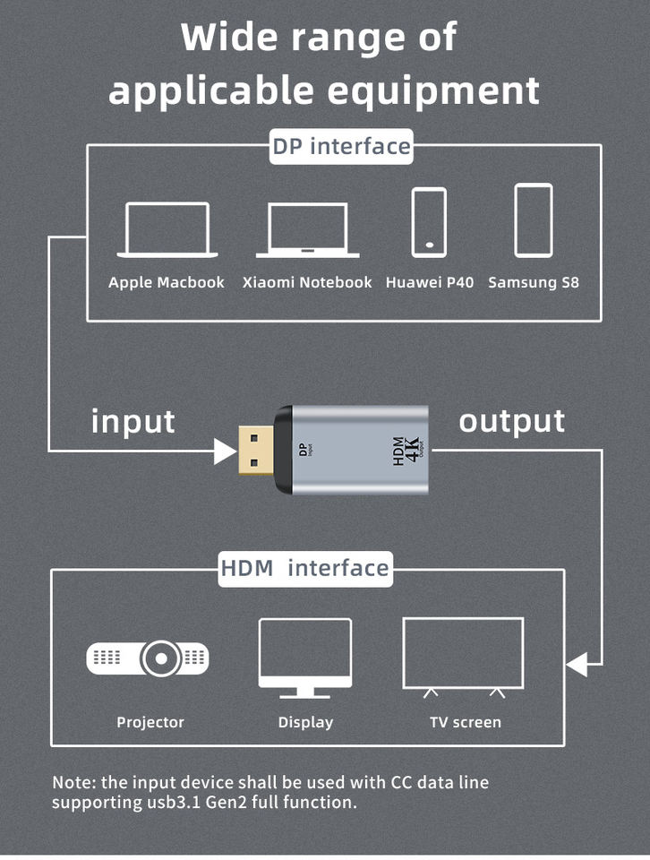 Type-c female to HDM DP minidp male adapter