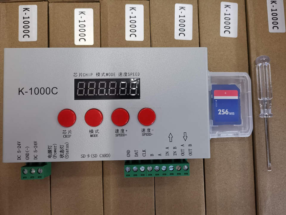 K1000c lập trình Led điều khiển DMX512 kiểm soát địa chỉ duy nhất đôi-dây IC ws2811 2812 2048 pixels SD Thẻ điều khiển