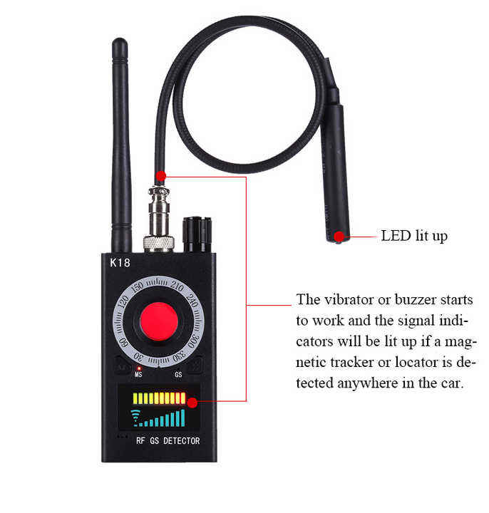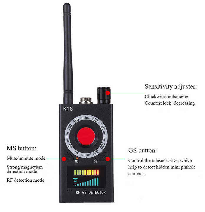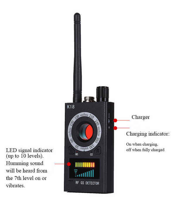 Detector de Cámaras K18 Multifunción Anti-Cámara Rastreador RF de Lente de Señal GPS y Detector de Audio Inalámbrico con Sistema de Alarma
