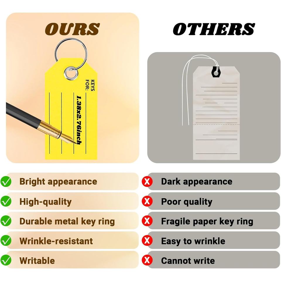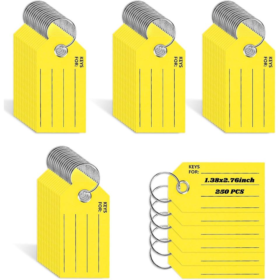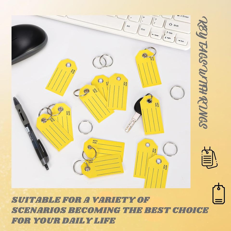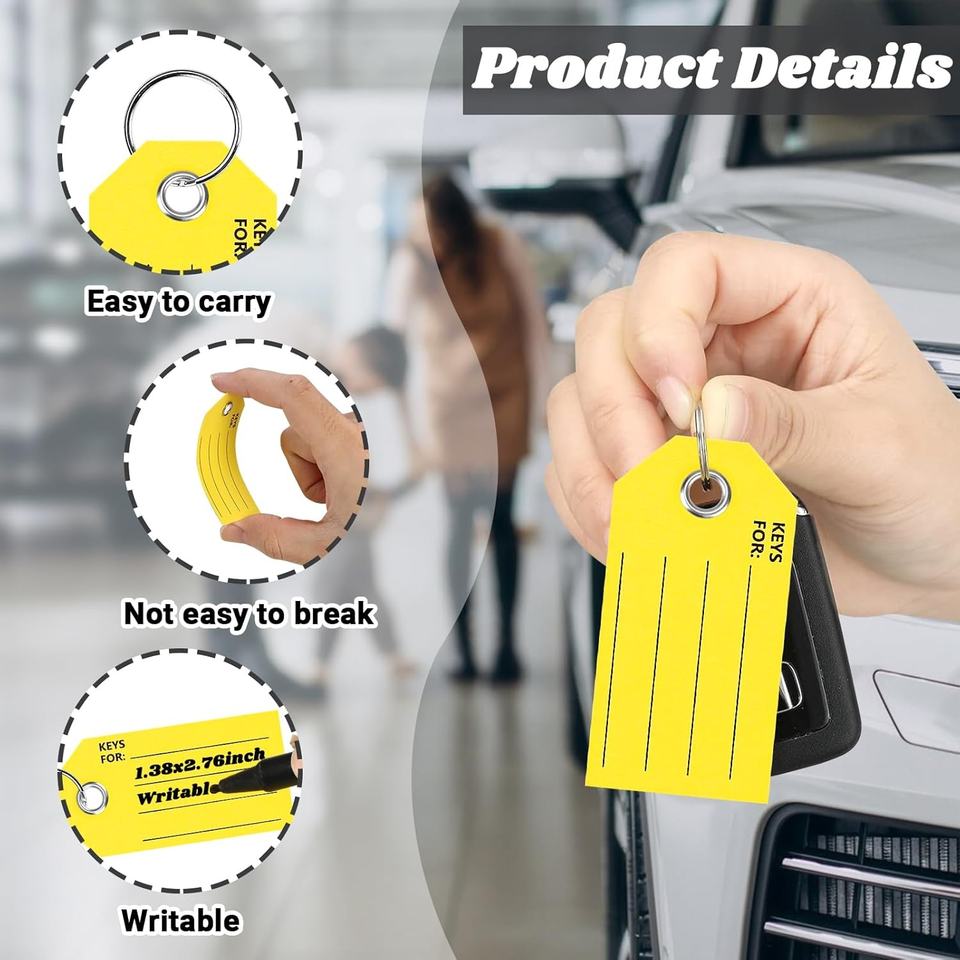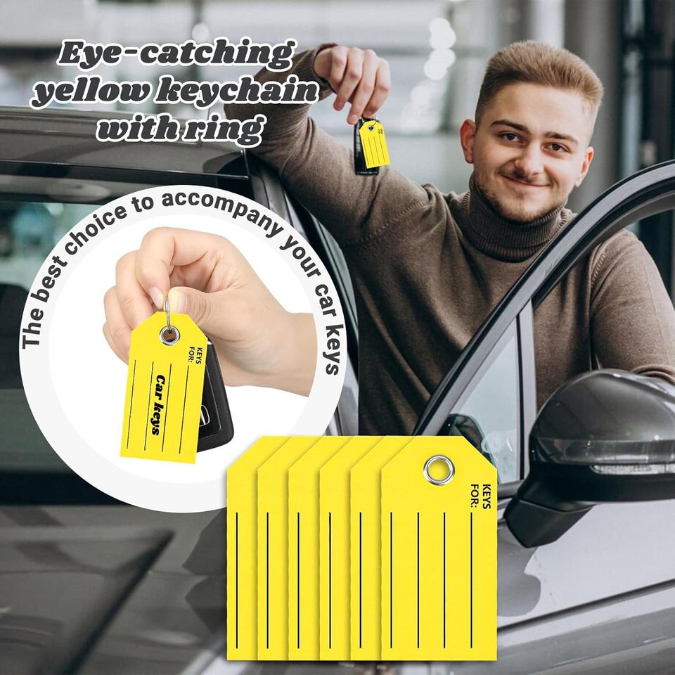 Thẻ chìa khóa có nhãn thẻ chìa khóa màu vàng với thẻ móc chìa khóa vòng để viết trên thẻ chìa khóa xe có nhãn thẻ hành lý để ghi nhãn